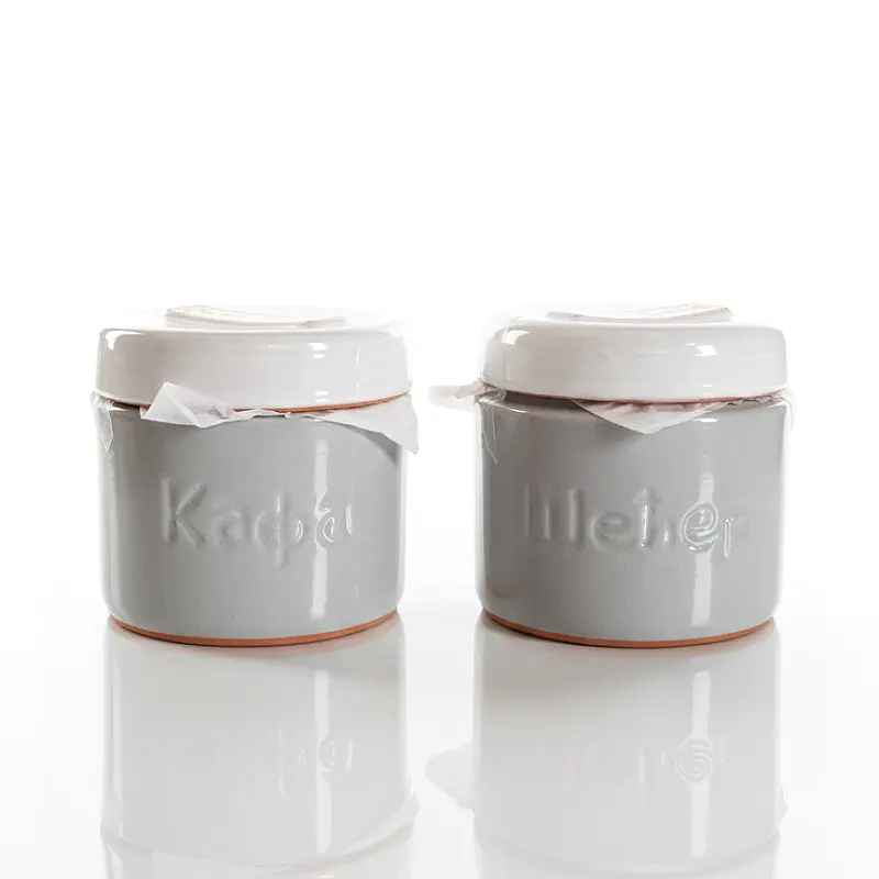 Poklopci: Poklopci su beli, glazirani, i deluju kao da su hermetički zatvoreni papirom (što sugeriše svežinu proizvoda). Poklopac je dizajniran da osigura svežinu sadržaja.